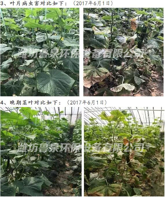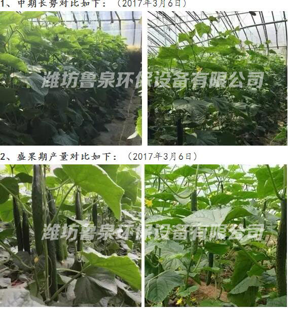 經(jīng)過分析研究,全體與會人員一致認(rèn)為,使用生態(tài)水灌溉的黃瓜有以下四大優(yōu)點(diǎn):一是外形方面,植株高,葉片厚無斑點(diǎn),顏色油綠舒展度好,莖粗壯,毛細(xì)根發(fā)達(dá);二是結(jié)果方面,果實(shí)大小均勻、畸形果少,上市早盛果期長,產(chǎn)量高、品質(zhì)好;三是土地性能方面,土壤疏松度好,保濕效果明顯,更適合蔬菜生長;四是管理方面,用藥少,安全性相對高。