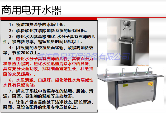 3:磁化水因其晶格細(xì)化,水分子具有充沛的活性,提高熱導(dǎo)率,縮短加熱或冷卻時間20%以上。