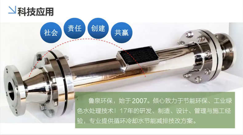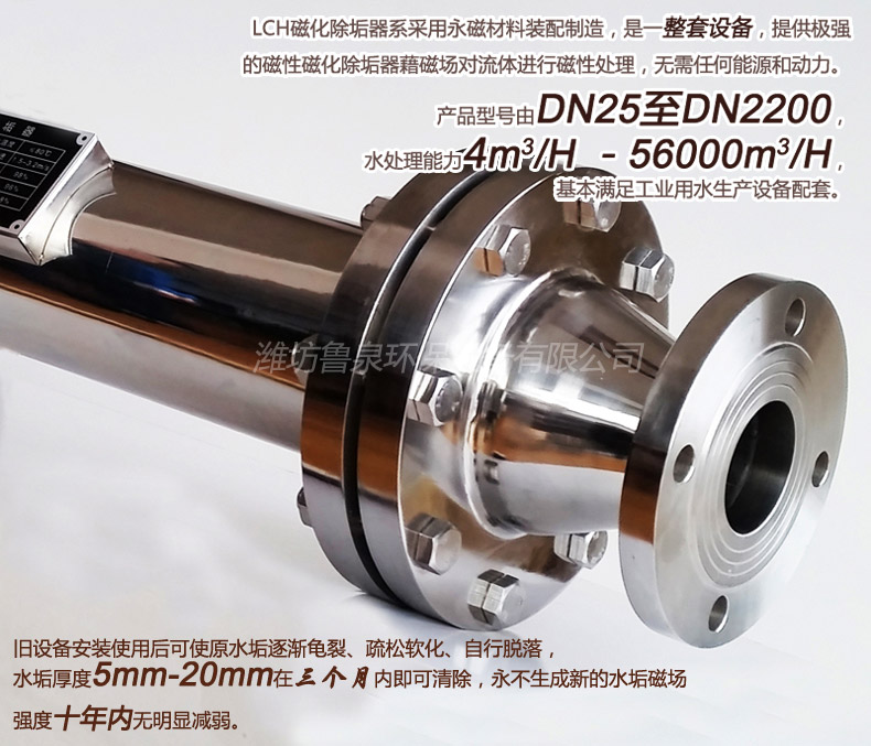 水分子有較強的極性。具有一定電導(dǎo)率的水或溶液以一定的速度垂直磁力線通過強磁場時,可以引起電子激發(fā),影響所析出沉淀的離子鍵,使所生成的沉淀強度降低,不再形成堅硬有序的結(jié)晶,而是像雪花那樣堆積,由于它和器壁的結(jié)合力弱,可不粘附受熱設(shè)備表面而隨水流沖走。同時由于水分子偶極距增大,使其與鹽類正負離子吸引力增大,使受熱設(shè)備、管壁上原有的舊垢逐漸龜裂,疏松軟化,自行脫落,達到防垢除垢目的。水垢一旦清除,不再結(jié)新垢。讓生產(chǎn)設(shè)備最終處于潔凈狀態(tài),達到環(huán)保、節(jié)能效果。
